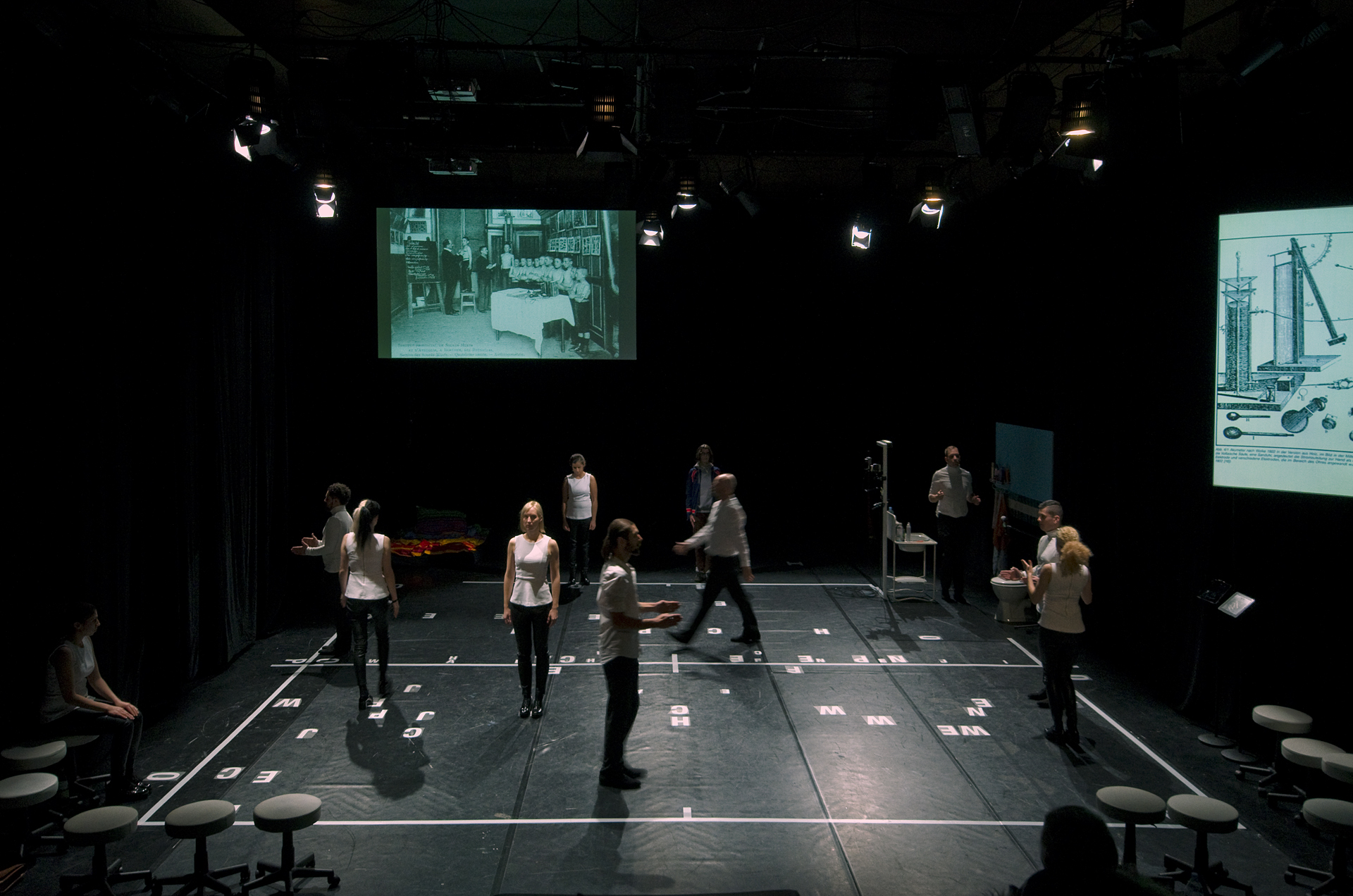 A theater play with deaf and hearing actors for a deaf and hearing audience.