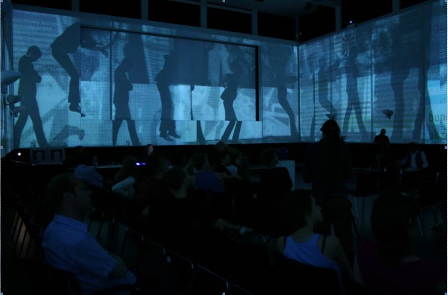 Heterotopia transforms the pure data of our media archives into a concrete space. Live generated computational loops will be processed, that will be able to incorporate purely operative random programs as well as contingent elements of live performances or audience interactions.